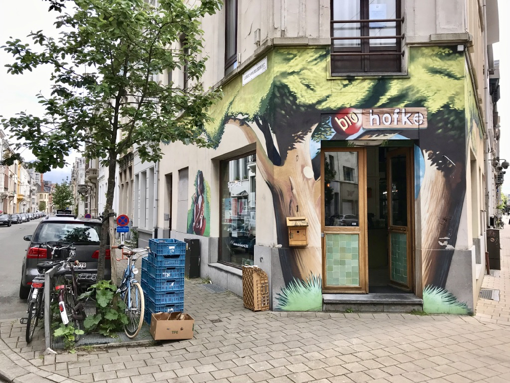 In de multiculturele volkswijk Borgerhout, grenzend aan de diamantwijk, maken de chassidische Joodse mannen, in zwarte jassen met statige hoeden en een krul aan de zijkant van hun hoofd, plaats voor ‘kleurrijke’ creatieve figuren. De lage huizenprijzen in de wijk trekken voornamelijk jonge mensen aan. Glimmende groente en fruit koop je hier bij de Turkse winkel van Perry. De lekkerste verse vis ligt voor een zacht prijsje aan de overkant bij de lokale visman in de vitrine. Overal word ik met open armen ontvangen en er wordt nog net geen buiging voor me gemaakt om me welkom te heten in Borgerhout. De wijk bruist, allerlei initiatieven openen en sluiten helaas soms ook weer hun deuren. Ik had mij verheugd op het plantenparadijs van Gitte in de wijk het Laar, helaas Gitte’s deur is inmiddels gesloten.