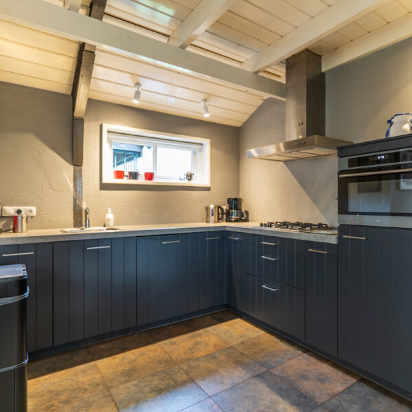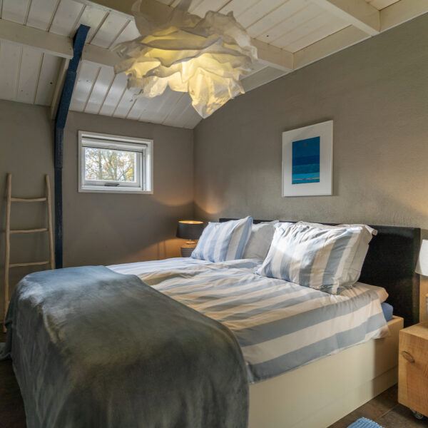 Vakantiehuis ’t Veldmaetje is een ruim huis, gezellig en warm ingericht. Zo’n huis waar je binnenloopt en je gelijk thuisvoelt. Alles in huis is gelijkvloers, er ligt vloerverwarming en de houtkachel zorgt naast warmte ook voor gezelligheid. De living heeft een royale zithoek, een grote eettafel en een open keuken met alle benodigde apparatuur. Er zijn drie slaapkamers, waaronder de master bedroom, een slaapkamer met twee eenpersoons boxspringbedden en een kinderkamer met een stapelbed en een hoogslaper. Deze laatste kamer is ook een heerlijke speelkamer: kinderen kunnen er een hut bouwen onder de hoogslaper, met de knuffels spelen en boekjes lezen.