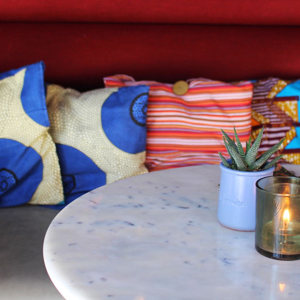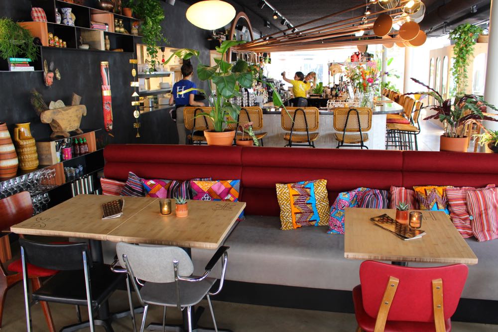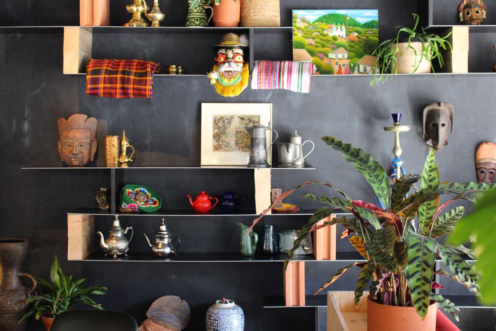 Hugo en Kim namen niet alleen mooie interieurspullen, maar ook de lekkerste smaken mee naar huis. Op de kaart staan allerlei wereldse gerechten (maar let op: géén fusion)! Hugo tipt de Pork Belly Báhn Mì uit Vietnam – een baguette met buikspek en mango (en zeer geschikt tegen een kater). Een favoriet van Kim is de Banana Roti uit Thailand. We testten ze allebei. Super lekker! Net als de Bunny Chow (een uitgehold broodje met wortelcurry) en de Gado Gado salade. Vraag de bediening vooral naar de drankjes op de wisseltap. De biertjes wisselen met het weer en “onze eigen buien”!