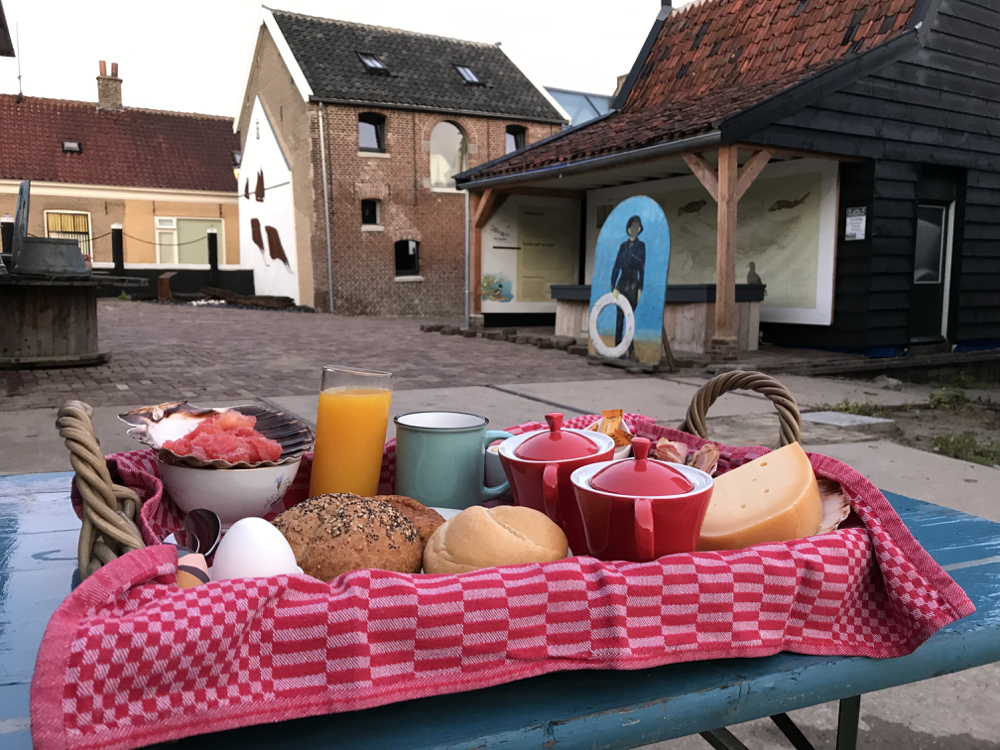 Aangezien ik niet naast de deur woon, vraag ik mij af of ik niet beter op het eiland kan overnachten. Ik heb nog nooit zo’n goede beslissing genomen. Ik slaap op een wel heel Bijzonder Plekje: BB&B, Bed, Boat en Breakfast op een in ere herstelde werf in het plaatsje Middelharnis. Een fijne uitvalsbasis voor mijn ontdekkingstocht over Goeree: