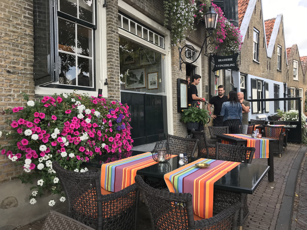 Bij terugkomst aan wal schuiven we aan een kleurrijk gedekte tafel bij Brasserie ’t Vingerling, één van de gerestaureerde monumentale panden aan de jachthaven van Middelharnis. De vele Gault&Millau, Michelin en The Fork stickers op het raam duiden op een Goereese topper. Op het menu de verse vangst die vanmorgen bij de visafslag is afgeslagen. Gerookte zalm, Stellendamse garnaaltjes, scholfilet en kabeljauw in combinatie met boontjes en aardappelen vers van het omliggende land. Aanrader: het steeds wisselende drie-gangen maandmenu.