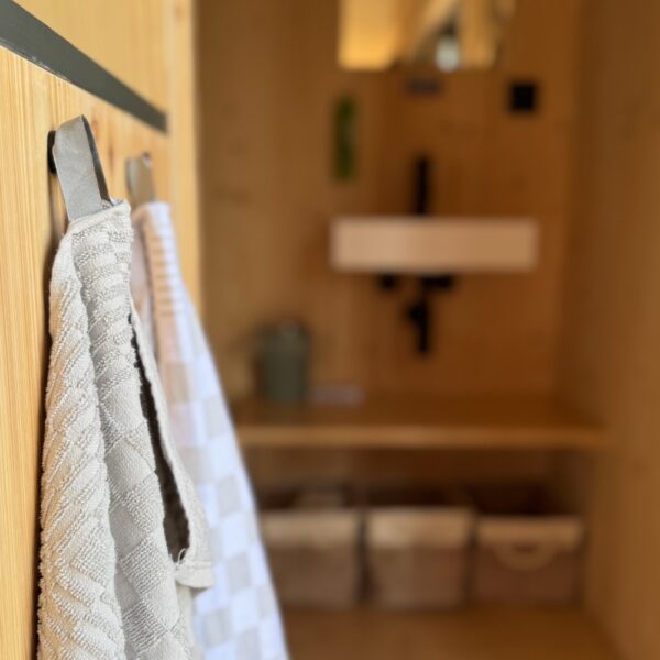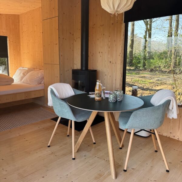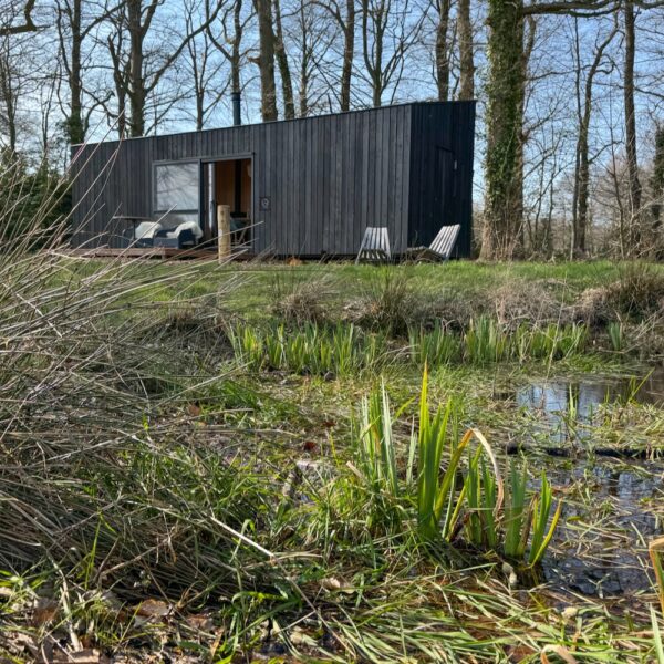 Waar die cabins staan? De Twente Cabins staan op twee verschillende locaties, in de natuur. Om je verblijf in de natuur zo veel mogelijk te benadrukken, is bij het ontwerp van de cabins gebruik gemaakt van grote ramen. Binnen en buiten lopen naadloos in elkaar over. Laat je je graag verrassen? Kies dan voor de Twente Cabin in Hezingen en ontdek wat een paar dagen op een ‘geheime’ locatie met je doen. Je meldt je bij de receptie van Erfgoed Bossem in Lattrop-Breklenkamp en rijdt vervolgens met een routekaartje naar de plek van je bestemming. Volop privacy gegarandeerd in de natuur.