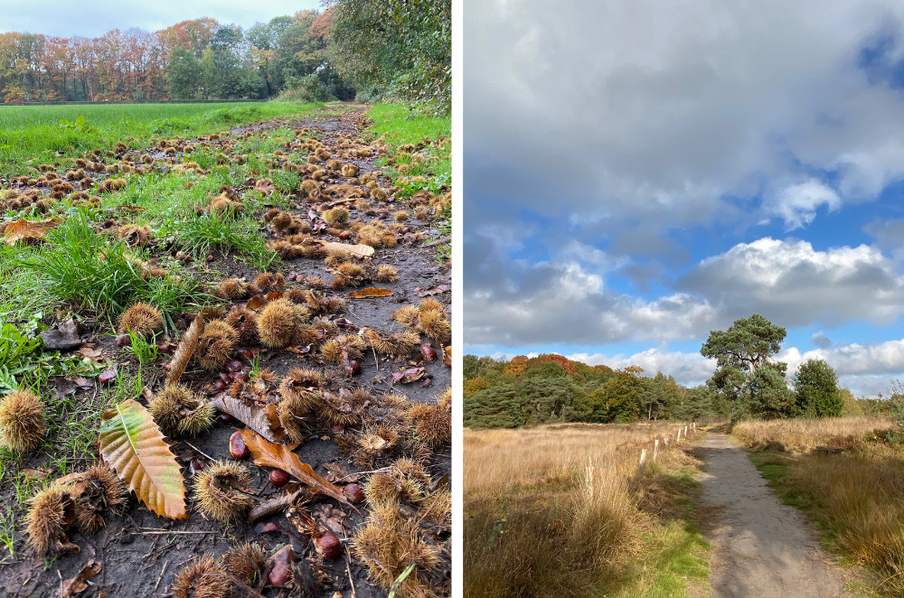 De herfst doet langzaamaan zijn intrede, de eerste bladeren verkleuren, (tamme) kastanjes liggen op mijn pad. Ze geven mijn ‘schilderijen’ extra kleur en het voelt alsof ik in een schilderij wandel.