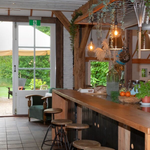 ‘Comfortabel, knus, warm en gezellig’ zo omschrijven Ria en Hans hun familiethuis. Precies wat je zoekt voor je familieweekend of vriendenuitje. Daar komen een aantal hele fijne extra’s bij: voor de gezellige avonden is er een bar met biertap, voor de ochtend erna barista-waardige koffie (eigenlijk voor de hele dag). De kamers hebben allemaal een eigen badkamer met regendouche, er is een familiekamer bestaande uit twee slaapkamers met een gedeelde badkamer en een familiekamer met een bedstede (ook geschikt voor volwassenen). Op de begane grond vind je de open haard met gezellige zithoek en een lange eettafel bij de woonkeuken.