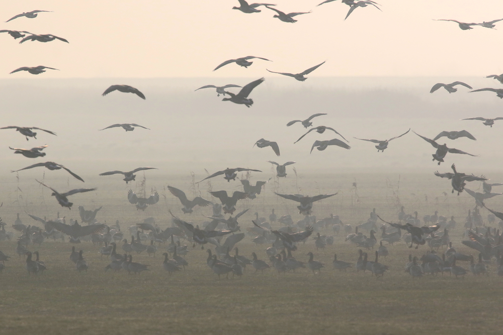 Wist je dat van de 2 tot 2,5 miljoen ganzen die in Nederland overwinteren, zo’n 600.000 tot 700.000 in Friesland verblijven? Rond eind september komen de trekganzen aanvliegen vanuit hun broedgebieden bij Spitsbergen, Nova Zembla, Siberië en Scandinavië. Het grootste deel hiervan gaat naar Waterland van Friesland. Een wandeling of fietstocht geeft ’s winters dan ook bijna ‘ganzengarantie’. Het is een prachtig gezicht al die ganzen in de uitgestrekte weilanden en maisstoppelvelden. Ganzen zie je bijvoorbeeld foerageren rondom de Aldegeaster Brekken en Goïngarijp.