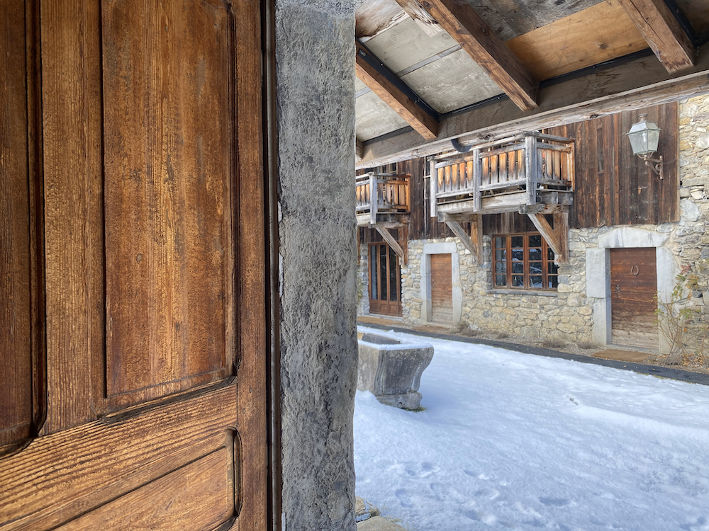 Eenmaal door de krakende dikke deur leidt een perfect versleten leistenen vloer uitnodigend naar de lounge en naastgelegen bibliotheek. Eeuwenoude balken, antieke kasten en smaakvolle banken bepalen de sfeer. Alpine chique met Engelse charme. Elf grote en kleinere kamers liggen verspreid over het huis en in de romantische tuin. Een bad op pootjes op de plek waar waardevolle zaken als aktes en de bijbel werden bewaard. Een bedstede in de oude appelschuur en een blauwe Franse Country twist in wat ooit de woonkamer was.