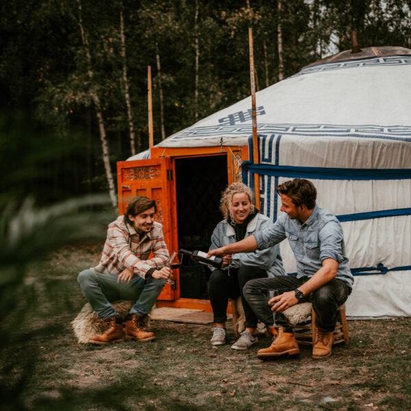 Wat maakt een verblijf bij Winterwoods zo bijzonder? Allereerst de accommodatie: je overnacht in een traditionele Mongoolse yurt met daarin een houtkachel, een tweepersoons bed en twee losse bedden. Doordat de yurt goed geïsoleerd is, blijft de warmte van de houtkachel goed hangen. Samen met de warme wollen dekens op je bed hoef je geen kou te lijden, zelfs niet in hartje winter. Dan de locatie: de yurts staan op een terrein van Staatsbosbeheer in de bossen in het hart van Drenthe. Luister ’s nachts naar de geluiden van de natuur en hoor het gescharrel van dassen, vossen en andere nachtdieren. Misschien zie je bij zonsopgang wel een ree. Daarnaast is het concept van Winterwoods bijzonder. De pop-up camping heeft een gezamenlijke verzamelplek, een flextent met tafels, zitplekken en heaters. ’s Avonds is het een gezellige ontmoetingsplaats met kampvuur. Als gast mag je ook gebruik maken van de outdoor wellness met twee houtgestookte sauna’s en hottub, hoe heerlijk midden in het bos!