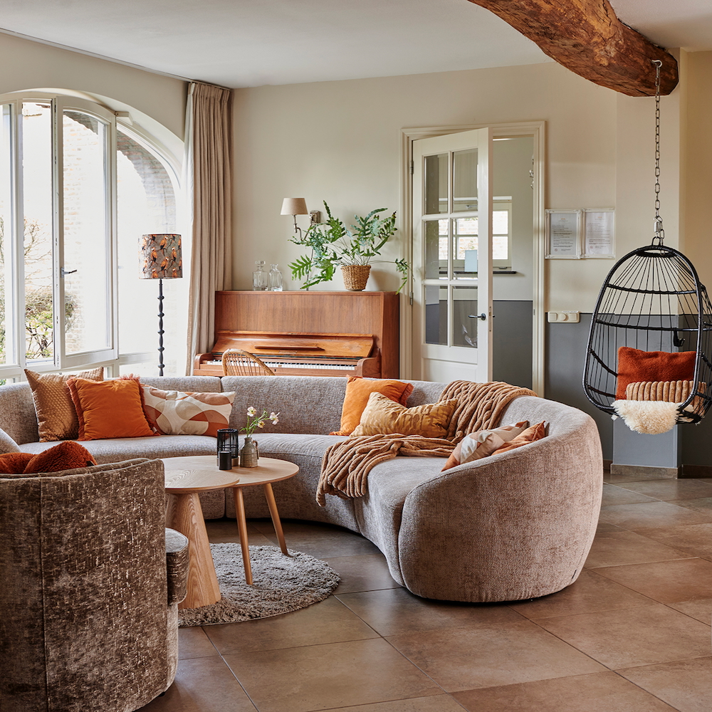 Stap binnen bij Cottage de Grote Berckt en je voelt de liefde en warmte waarmee de groepsaccommodatie is ingericht, onderscheidend voor grotere vakantiehuizen zoals deze. De leefruimte is het hart van het huis. Een grote keuken met een lange eettafel nodigt uit tot genieten. Van lekker ontbijten tot spelletjes spelen en lang tafelen met mooie gesprekken. Ook de zithoek in de woonkamer is uitnodigend. De mooie banken staan zo opgesteld dat je gezellig samen bent en ook afzonderlijk van elkaar kunt zitten.