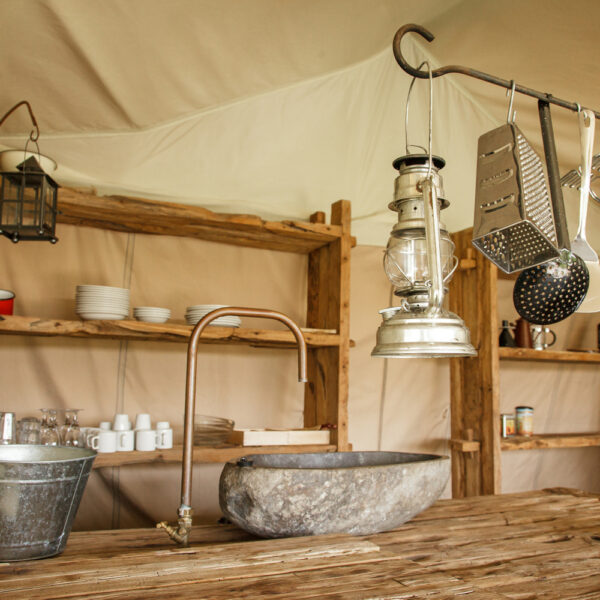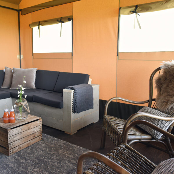 Wil je iets meer luxe in de tent? Kies voor een Woodlodge (8 persoons) of Beachlodge (6 persoons). Net zo stoer en robuust als de andere lodges en gaaf ingericht met op-maat-gemaakt meubilair. Ze bieden net iets meer comfort: in de keuken vind je een koelkast, je kookt op gas en deze lodges hebben warm en koud water. Er is een toilet aanwezig in de tent en je hebt in het sanitairgebouw een privé douche en wasbak.