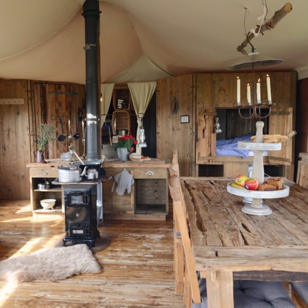 Met z’n twee naar zee? Of krijg je vrienden op bezoek? Boek de lieve kleine 2-persoons lodge met veranda, een trekkershut van canvas! Ook zijn er nog acht ingerichte tipi’s, genaamd de Jutter. Elke Jutter heeft een eigen privé picknicktafel, een volledige inrichting, een kachel en zelfs 4 heerlijke matrassen. De eigen douche en toilet en overdekte keuken maken het feest compleet! Tipitijd!