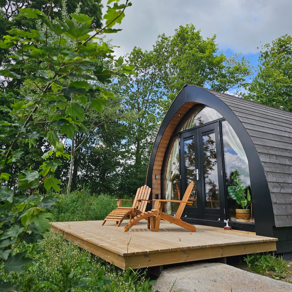 De Tiny Lodges liggen op een verhoging aan de natuurvijver. Vanaf het terras kijk je uit op de natuur. Hoewel de pods klein zijn, heb je alle faciliteiten die je nodig hebt voor een paar dagen genieten. Een comfortabel tweepersoons bed, een badkamertje met douche en toilet, een keukentje en zitgedeelte. De Luxury Lodges (vier in totaal) zijn groter en bieden meer luxe en meer comfort. Een ruimere leefruimte en badkamer, een goed uitgeruste keuken en grote ramen die je uitzicht bieden op de vijver of de natuur. Op het terras voor je lodge zit je altijd goed!
